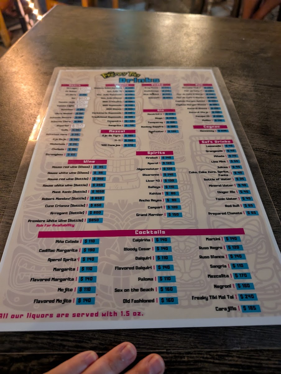 The Freaky Tiki Bar & Grill Menu